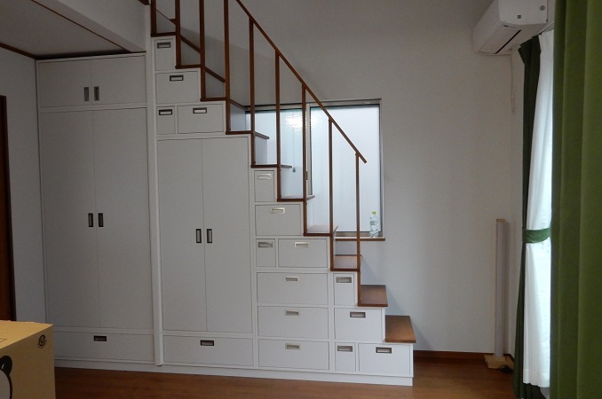 新築住宅でも、ロフトのある家でも現場に合わせて、製作・施工販売をしています。 階段下の空間を有効な収納スペースにした階段で、工期も早く5~6時間で完成します! |