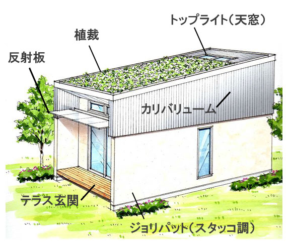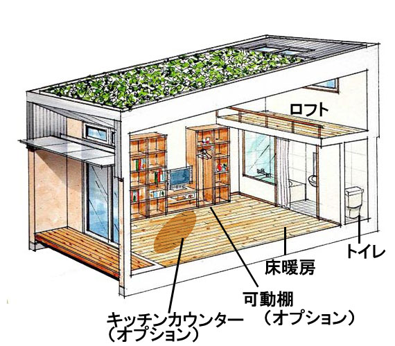 - 屋根には植栽または太陽光発電取り付け可能(オプション)