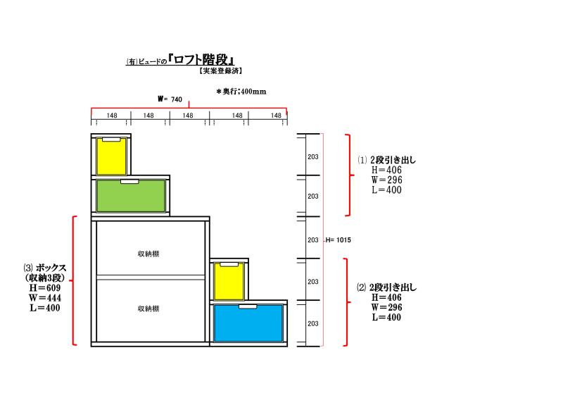 引出付ロフト収納階段家具(実案登録済)