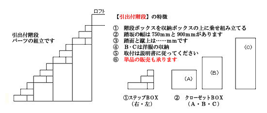 引出付収納階段・仕様&価格1、階段の高さや幅・段数などは⇒現場に合わせて調整します。