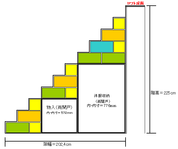 『引出付ロフト収納階段家具』