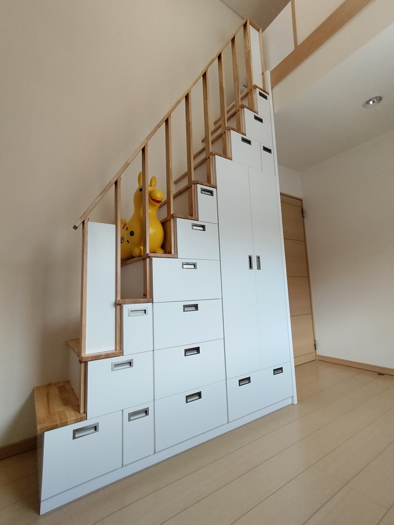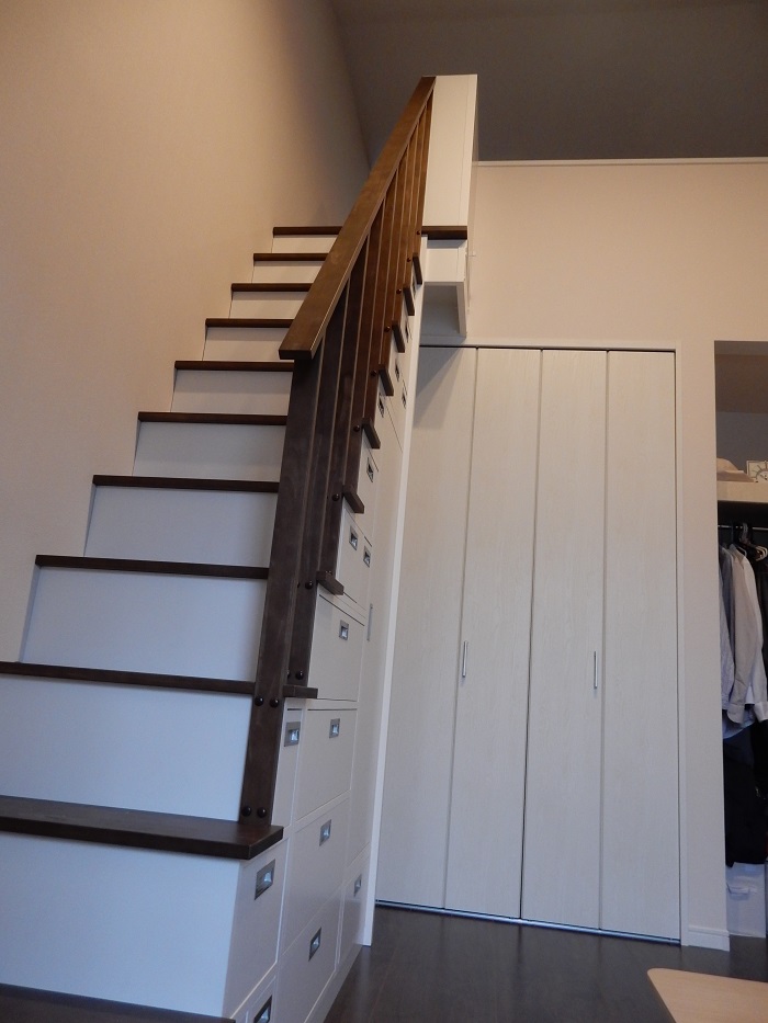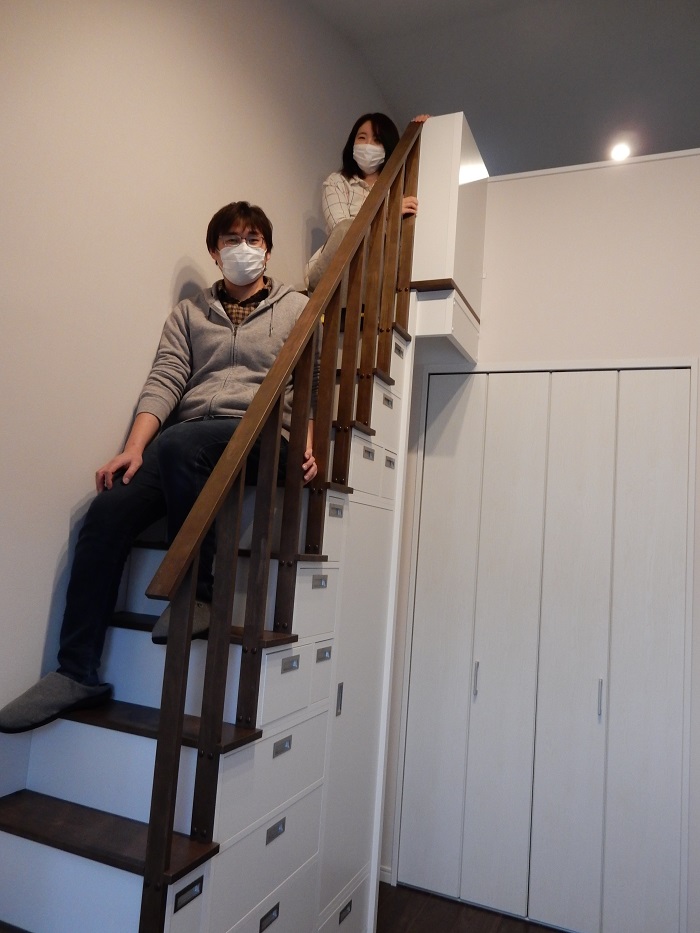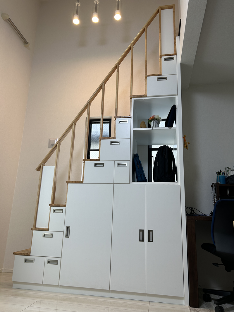 私たちの希望通りの『引出付ロフト収納階段』が完成しました。