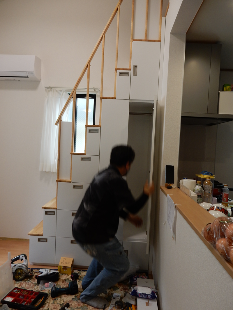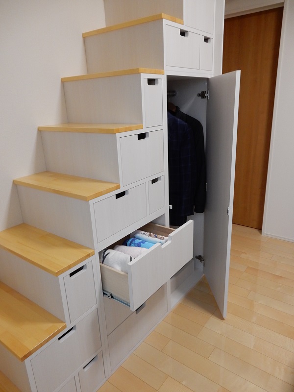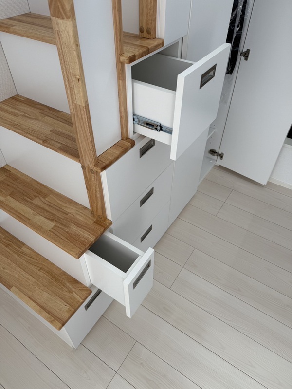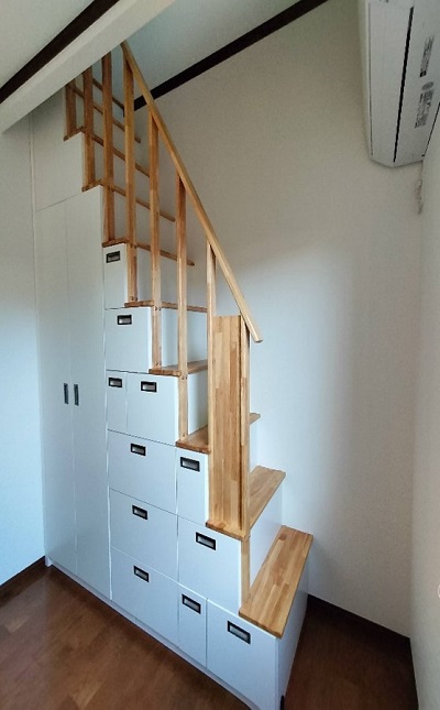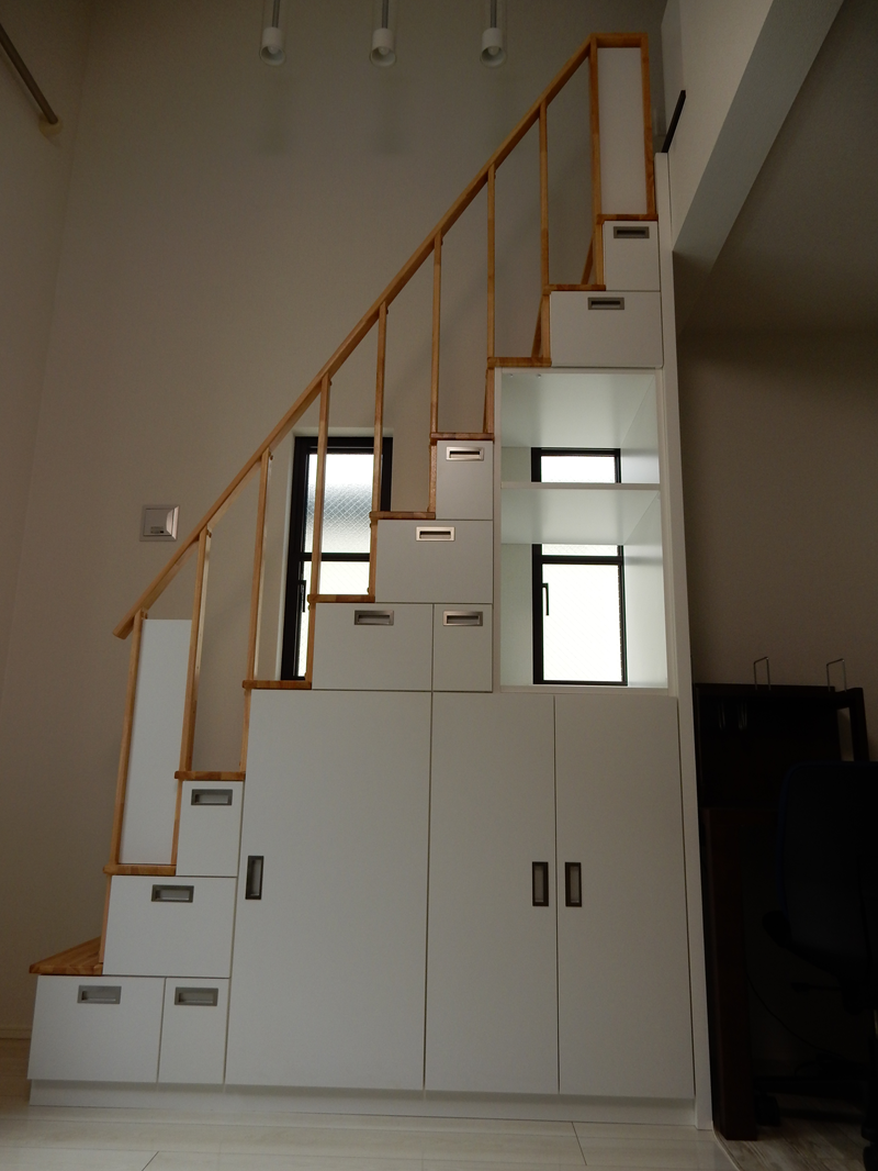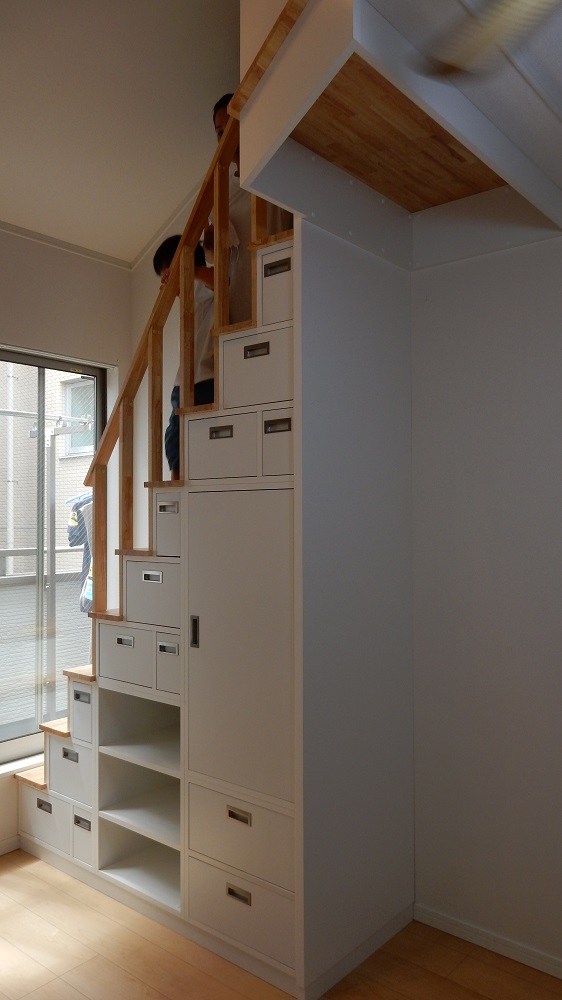 私たちの希望通りの『引出付ロフト収納階段』が完成しました。