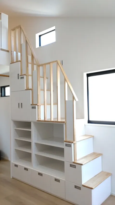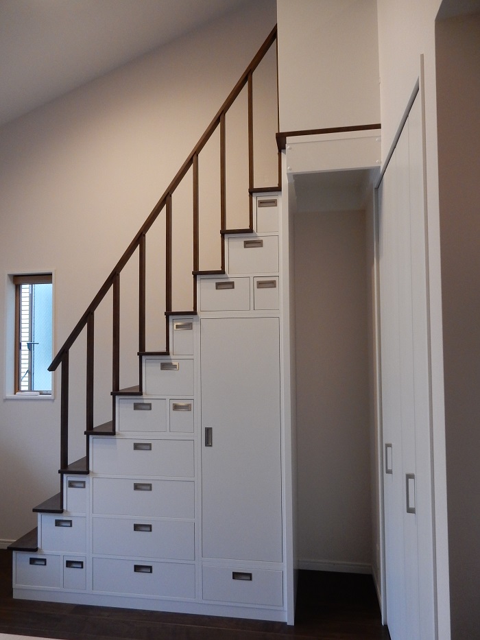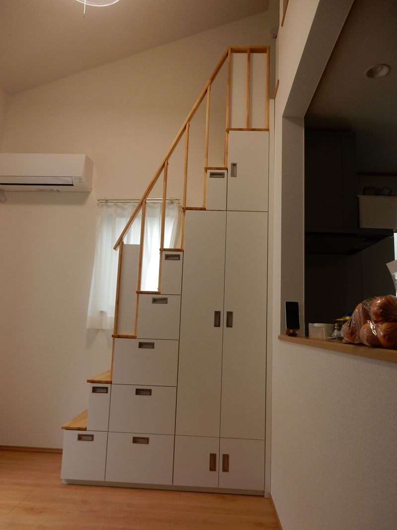 お施主様のご希望は、『①安全な昇降・②収納が沢山できること