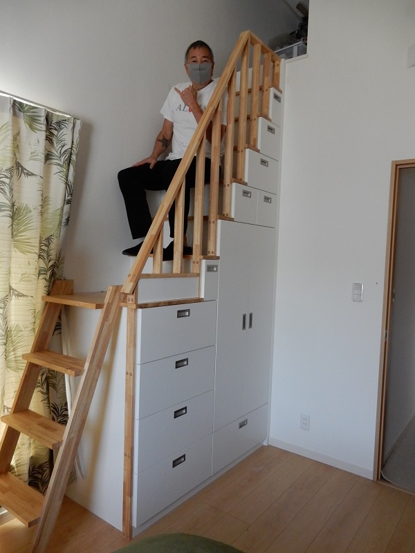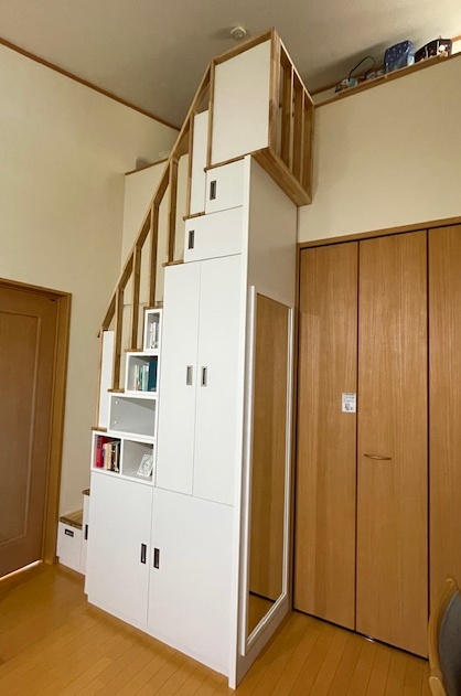 今は、収納も沢山でき、部屋がスッキリし、ロフトに行くのも楽になりました。