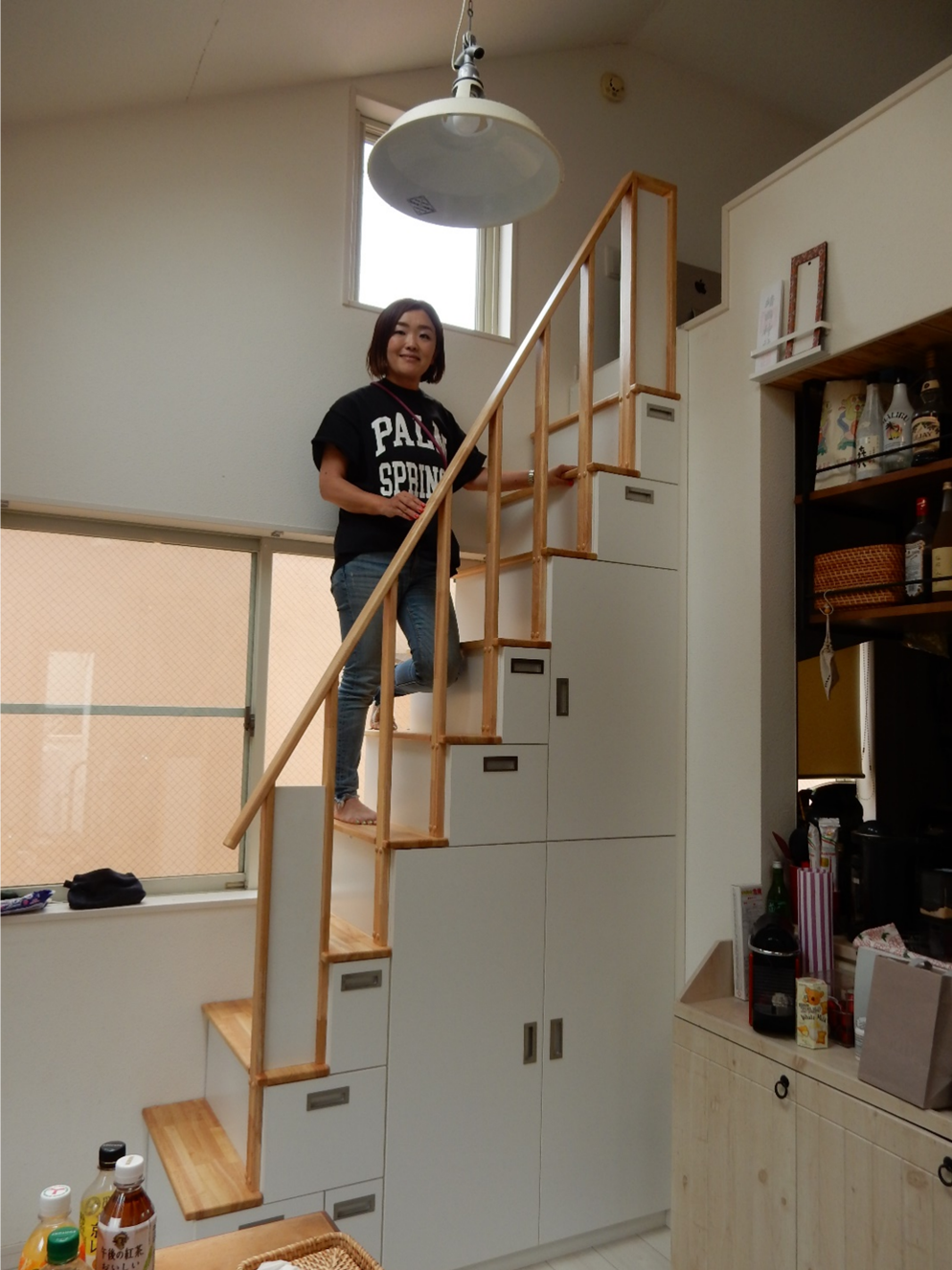 思ったより圧迫感がなく、すっきりとした印象で、上り下りもだいぶ楽になりました。しかも収納たっぷりで、部屋全体のイメージとも違和感なく、むしろ一体感すら出ていました。