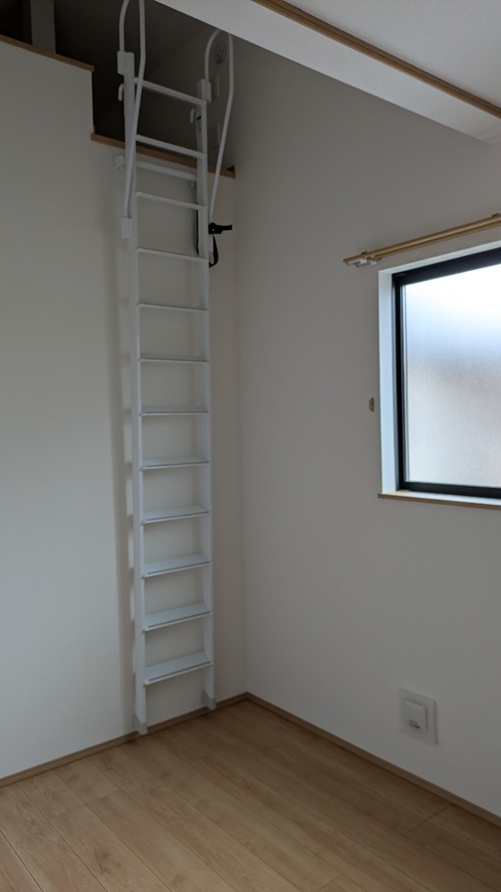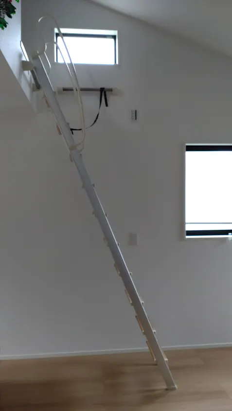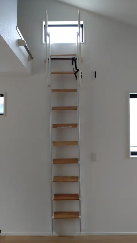 今回は窓に重ならない様に階段を設置するととても急になってしまうので、3分の1をはしごに変更いたしました。