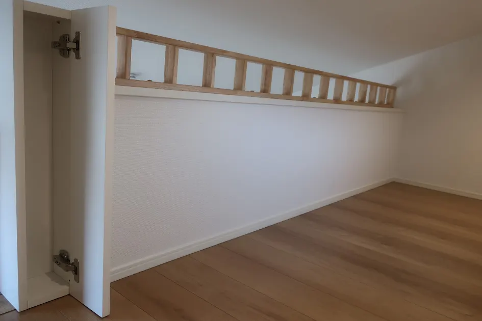 ロフト付きの分譲住宅を購入したのですが、高い所が苦手と梯子は非常に不便だと思いネットなどで対策を調べていたところビュードさんを見つけました。何度も現場での打合せをして中窓・コンセントなどを避けて作るよう考えて頂きました。