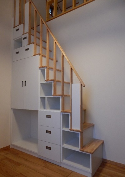 上尾市の建築業有限会社ビュード HOME > ビュードの『引出付ロフト収納階段家具』